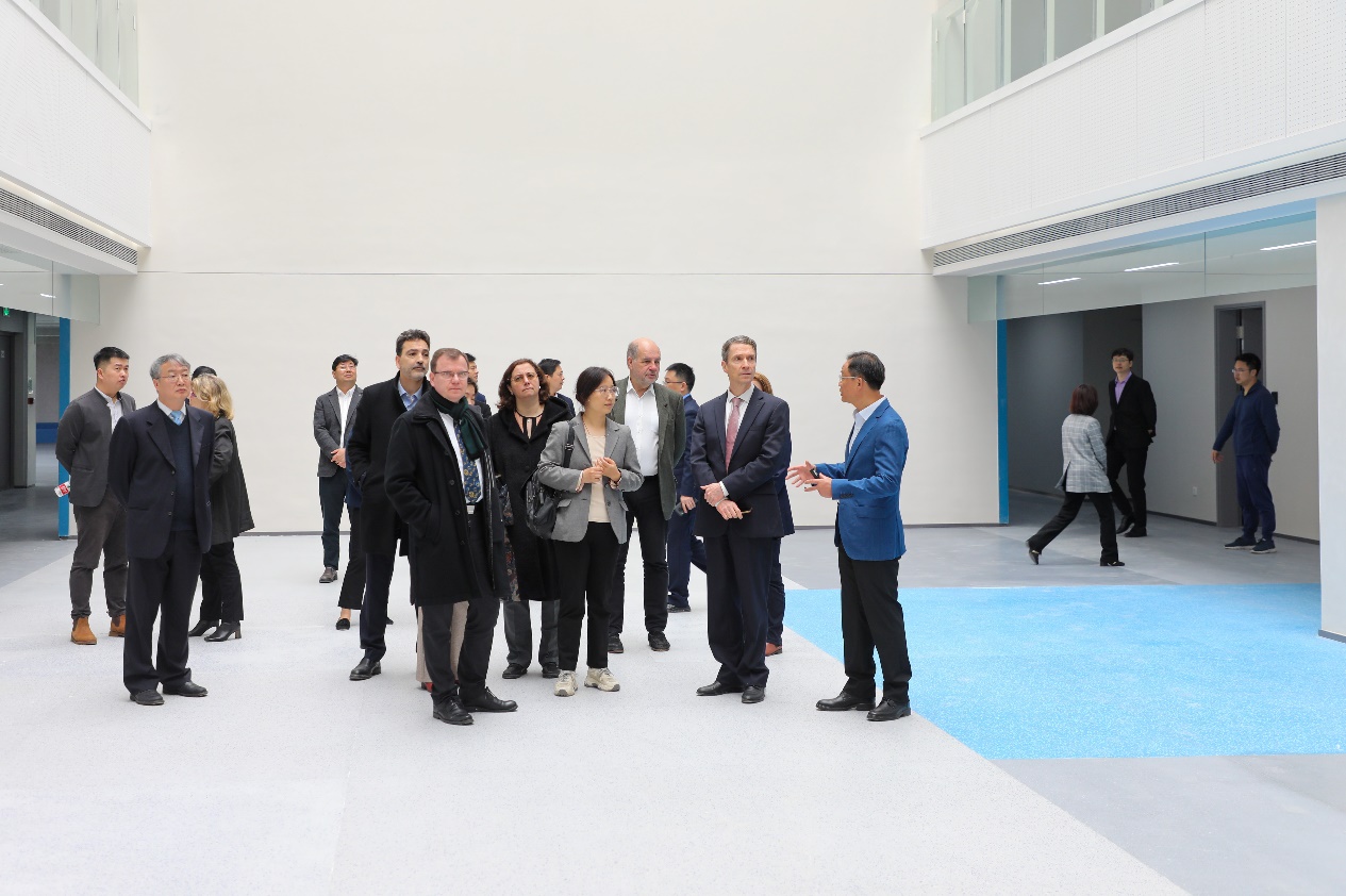 Le président SOUBEYRAN et sa délégation ont visité le campus de l'Institut sino-français d'Aviation civile Beihang-ENAC, accompagnés par SHU Peidong, inspecteur général de l'enseignement du Département de l'éducation de la province du Zhejiang, HUANG Haijun, vice-président de l'Université Beihang, ZHAO Weisheng, adjoint au président de l'Université Beihang, HONG Guanxin, doyenne de l'École Centrale de Pékin. XIANG Xiaobing, directeur adjoint des travaux de construction du campus, a présenté en détail aux illustres visiteurs l'idée directrice de la construction du campus, les projets et la progression des travaux, en mettant l'accent sur les futurs scénarios d'usages et les fonctions de la bibliothèque, des bâtiments d'enseignement et de recherche, des résidences, des restaurants et des gymnases. Le président SOUBEYRAN s'est émerveillé de la beauté du campus, qui est à la fois moderne, international et intelligent.