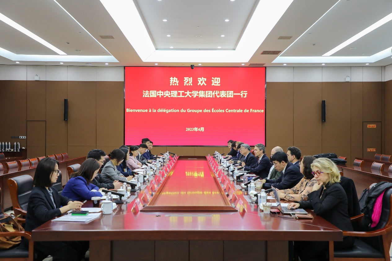 Le 25 avril, monsieur Romain SOUBEYRAN, président du Groupe des Écoles Centrale et directeur de CentraleSupélec, monsieur Gérard CREUZET, membre de l'Académie des Technologies et délégué aux Relations internationales, président de l'Institut photovoltaïque d'Île-de-France, monsieur Gilles FLEURY, délégué général du Groupe des Écoles Centrale, monsieur Frédéric GENTY, doyen de l'École Centrale de Pékin, et leur suite, étaient en visite à l'Institut sino-français d'Aviation civile Beihang-ENAC, pour s'informer sur l'avancement de la mise en place du partenariat du Groupe des Écoles Centrale avec l'Université Beihang.