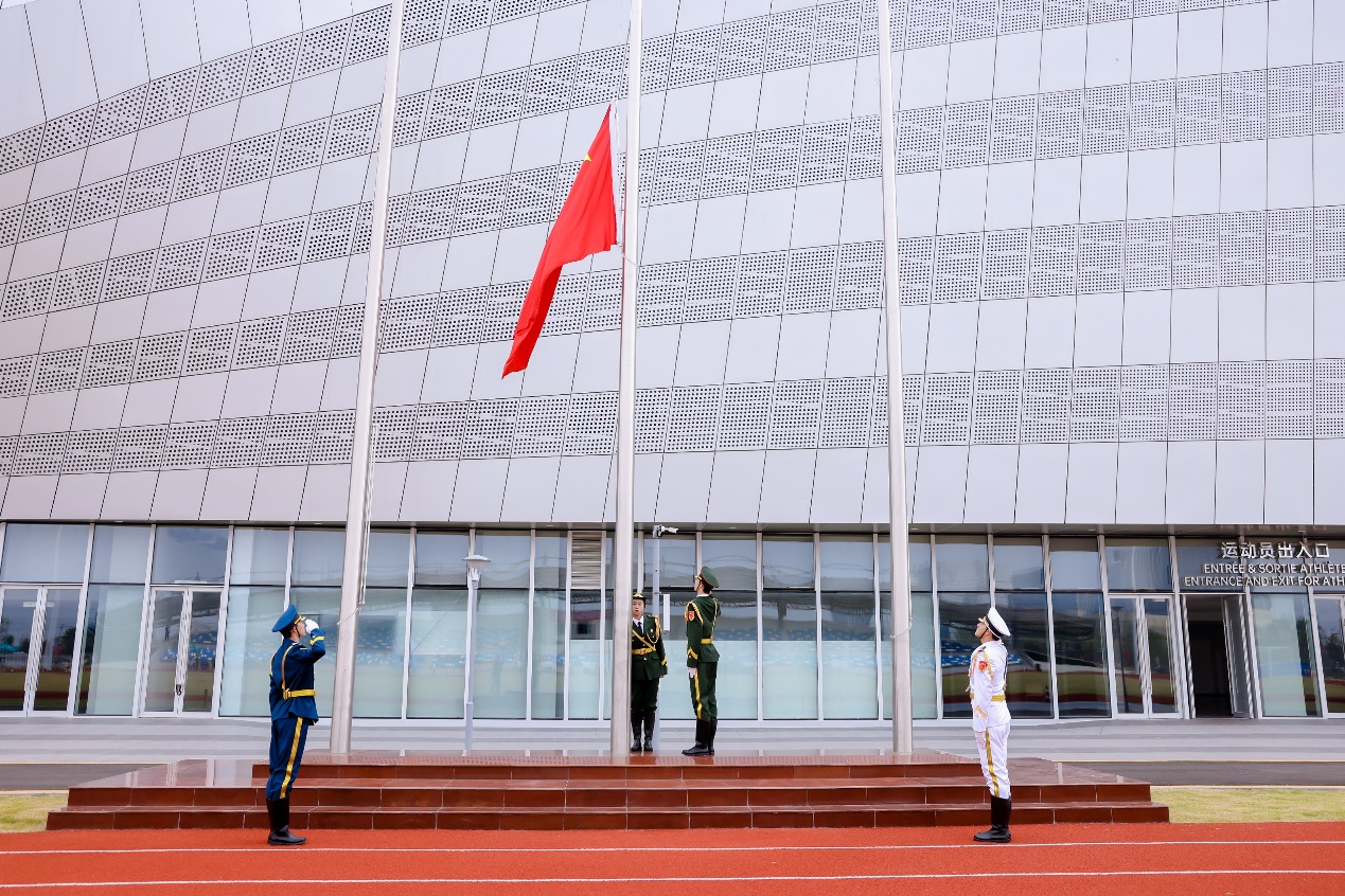 L'équipe de garde du drapeau national de notre institut a fait sa première apparition d'une façon étonnante, en escortant le drapeau rouge à cinq étoiles.