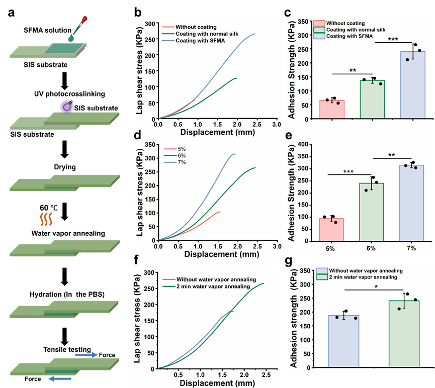 △ Figure 3. Le photodurcissement et le recuit à la vapeur d'eau améliorent la force de liaison interfaciale entre le revêtement à micro-rainures SFMA et le substrat SIS