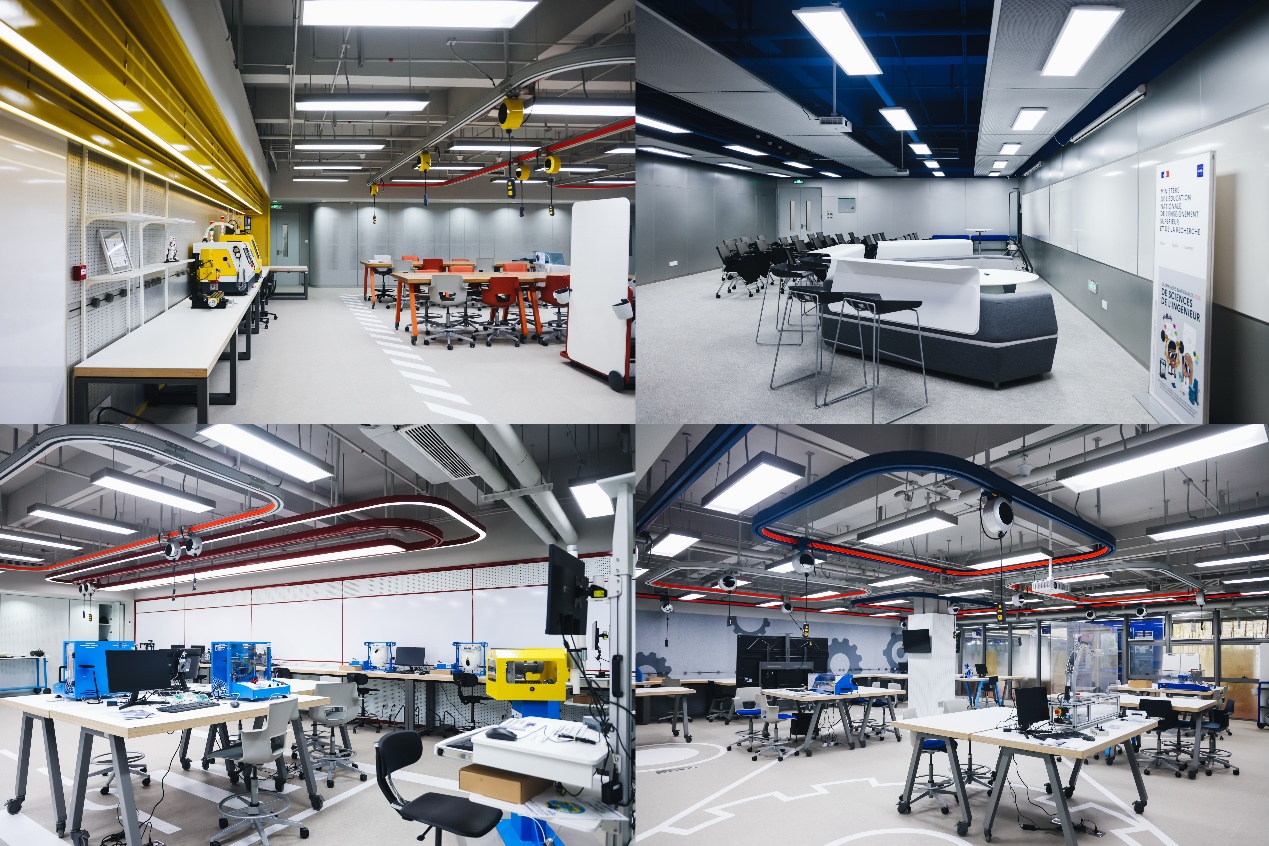Sur les lieux de l’événement, les invités, enseignants et étudiants sont allés découvrir les différents modules du laboratoire de sciences industrielles. Ils se sont arrêtés de temps en temps pour observer et participer aux activités variées qui les ont amenés à ressentir la synergie approfondie entre les approches pédagogiques chinoises et françaises et à mieux comprendre la sagesse et l’attention portées à la nouvelle planification de l’enseignement. Le laboratoire dispose de plus de 20 instruments pédagogiques distincts provenant de divers secteurs industriels français et offre aux étudiants des équipements expérimentaux, tels que des imprimantes 3D et des fraiseuses CNC, ainsi que des espaces indépendants, créant un environnement favorable à l’apprentissage, à la pratique et à l’invention.