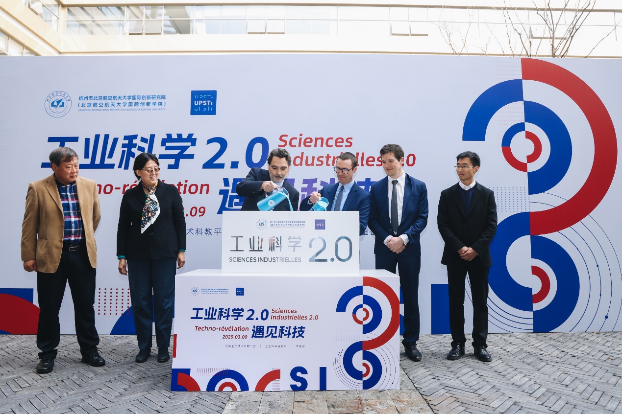 La cérémonie a été honorée par la présence de Hervé RIOU, président d’honneur de l’Union des Professeurs de Sciences et Techniques Industrielles (UPSTI), de Florent LE BOURHIS, président actuel de l’UPSTI, de PAN Changqing, directeur de la Direction de l’enseignement supérieur (Bureau des échanges et coopérations) du Bureau de l’éducation de Hangzhou, de HONG Guanxin, secrétaire adjoint du Comité du Parti et directrice de l’Institut international d’innovation, ainsi que de Frédéric GENTY, directeur français de l’Institut sino-français d’aviation civile Beihang-ENAC. Devant les enseignants et étudiants rassemblés pour l’occasion, M. Florent LE BOURHIS et M. Frédéric GENTY ont procédé ensemble au dévoilement de la plaque inaugurale du laboratoire de sciences industrielles.