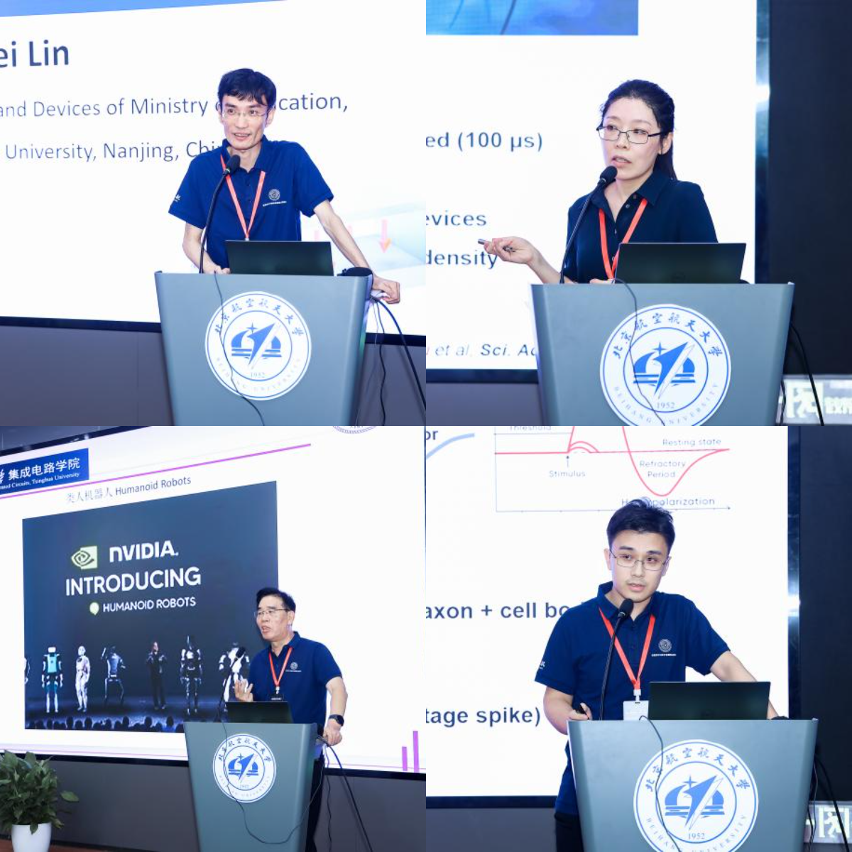 Le professeur Mohamad SAWAN, membre de l’Académie canadienne du génie et de la Royal Society du Canada, a présenté les avancées des processeurs neuromorphiques haute performance. Le professeur XU Yongbing, directeur du Laboratoire national clé sur les circuits spintroniques et technologies de l’Université de Nankin, a dressé un panorama allant de l’effet GMR des films métalliques multicouches aux propriétés spintroniques des matériaux magnétiques bidimensionnels. Le professeur LIU Qihang de l’Université des sciences et technologies du Sud a analysé en profondeur les propriétés inédites des matériaux magnétiques alternés. Le professeur Maohai XIE de l’Université de Hong Kong a détaillé, à travers la thermodynamique et la dynamique moléculaire, les procédés de croissance et de fabrication des films minces. Le professeur LIU Zewen de l’Université Tsinghua a exploré les recherches et développements sur les capteurs MEMS haute performance fondés sur le gaz d’électrons bidimensionnel. La professeure LEI Na de l’Université Beihang a présenté, de manière progressive et claire, les propriétés fondamentales des matériaux magnétiques. Le professeur LIN Weiwei de l’Université du Sud-Est a exposé le modèle théorique de l’inversion magnétique induite par courant. La professeure WANG Yan de l’Université de technologie de Hefei s’est penchée sur les applications informatiques basées sur les memristors et la mémoire flash. Le professeur JIANG Chengpeng de l’Institut international d’innovation de Beihang a introduit les progrès des dispositifs neuromorphiques à base de matériaux semi-conducteurs. Le professeur Jongsun PARK de l’Université de Corée a présenté de manière systématique l’architecture et les applications des circuits MRAM. Le professeur Fakhrul Zaman ROKHANI de l’Université Putra Malaysia a exposé la conception de puces de communication haute performance. Enfin, le professeur LI Yongfu de l’Université Jiaotong de Shanghai a présenté ses travaux innovants dans le domaine de l’imagerie fonctionnelle médicale.