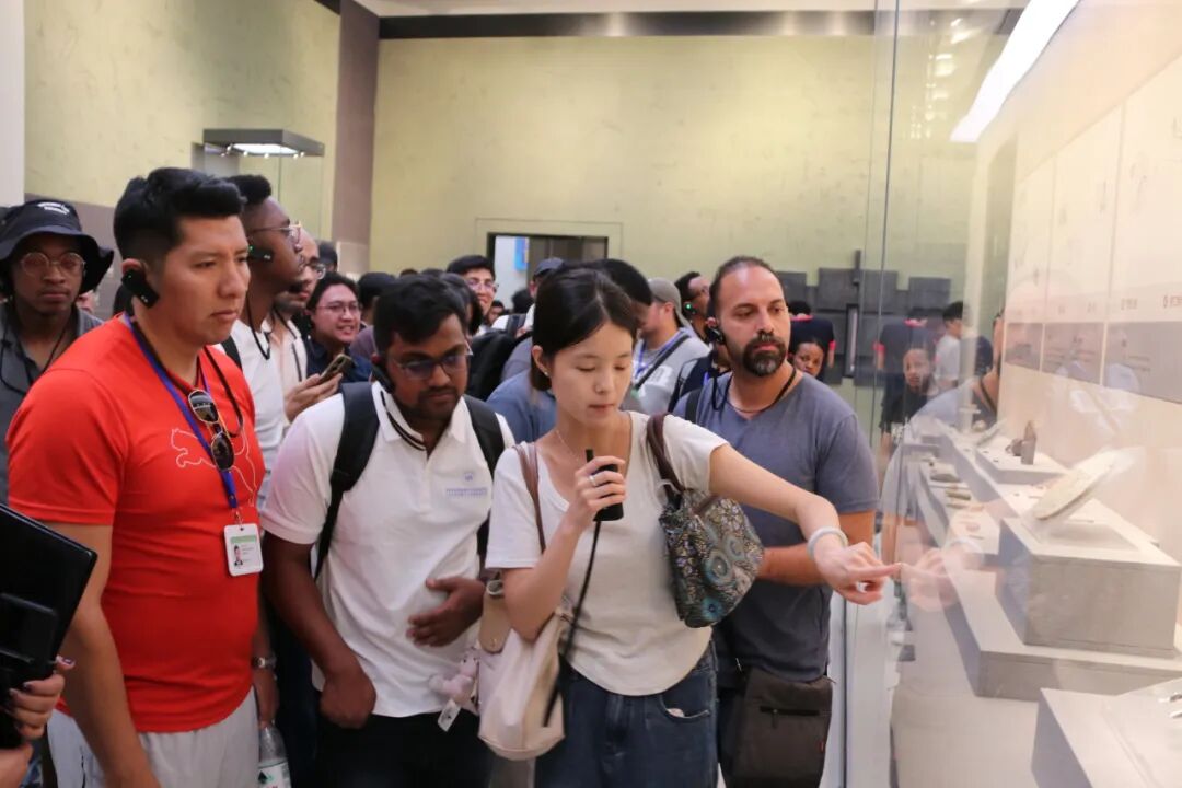 Dans les salles d’exposition, les étudiants se sont arrêtés pour contempler et rechercher les contours de l'histoire au milieu des expositions soigneusement organisées et présentées. Les concepts abordés en classe prennent vie grâce aux trésors exposés ; la longue histoire de la civilisation contée par les livres se matérialise en une expérience culturelle concrète. De nombreux étudiants ont pris des notes, consignant leurs premières impressions sur la civilisation chinoise. D’autres ont photographié les précieux objets exposés, souhaitant conserver ce souvenir à jamais.